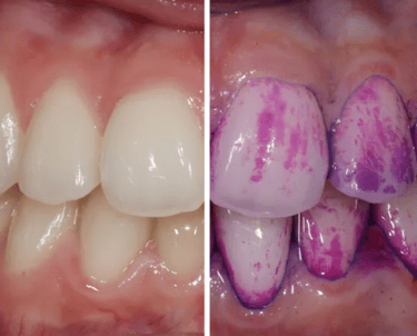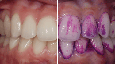 Specialus indikatorius nudažo apnašas – gydytojas ar burnos higienistas gali tiksliai kontroliuoti apnašų pašalinimą nuo dantų paviršių.
