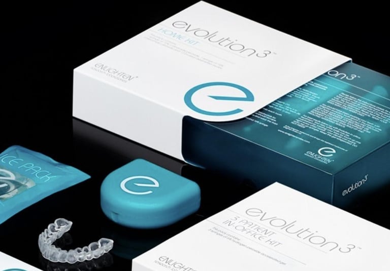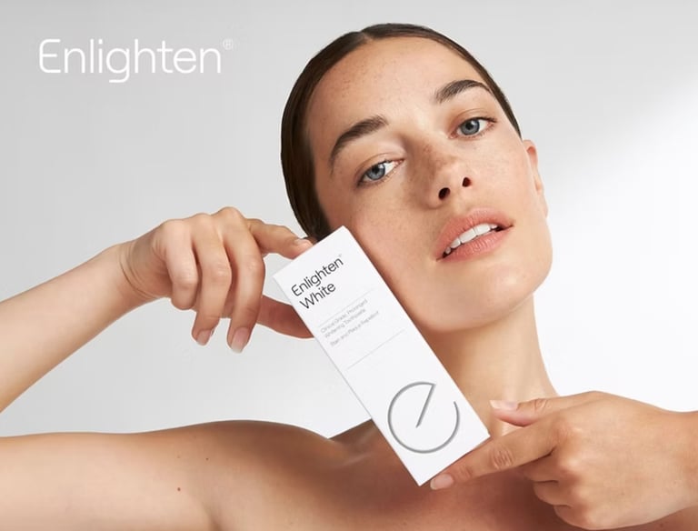 Dantų balinimas naudojant mineralų-peroksido terapiją "Enlighten" sistema;